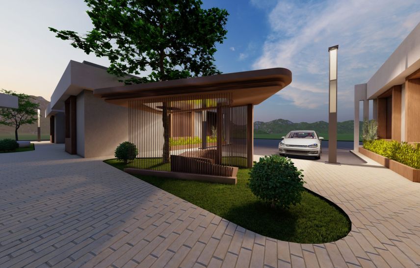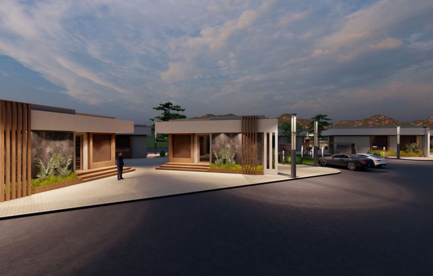 مشروع استراحات المروة هو مجمع سياحي يتألف من ١٠ فلل متطابقة، وهو مصمم لتقديم تجربة إقامة عصرية ومريحة. يتبنى المشروع تصميمًا حديثًا يجمع بين البساطة والوظيفة العملية، مع التركيز على خلق طابع دافئ وطبيعي بالاعتماد على الخشب كمكون أساسي. الميزة الأبرز في التصميم هي الدمج المتقن للخشب مع المواد الحديثة مثل الزجاج، مما يحقق توازنًا فريدًا بين الحداثة والطبيعة. ويتجلى ذلك في الفتحات الزجاجية الكبيرة جدًا التي تغمر المساحات الداخلية بالضوء الطبيعي، وتربطها بسلاسة مع المحيط الخارجي. هذا التوجه لا يخلق بيئة فسيحة ومشرقة فحسب، بل يعزز أيضًا الشعور بالارتباط بالطبيعة المحيطة، مما يوفر مساحة معيشية هادئة ومريحة.