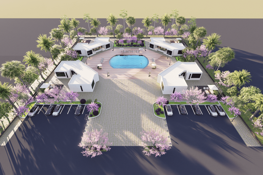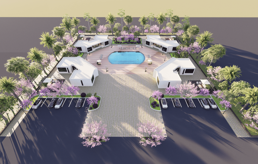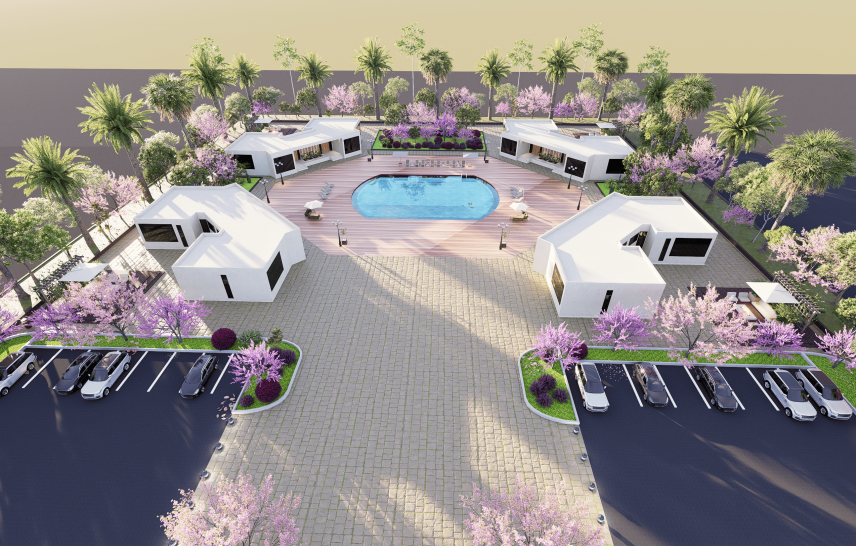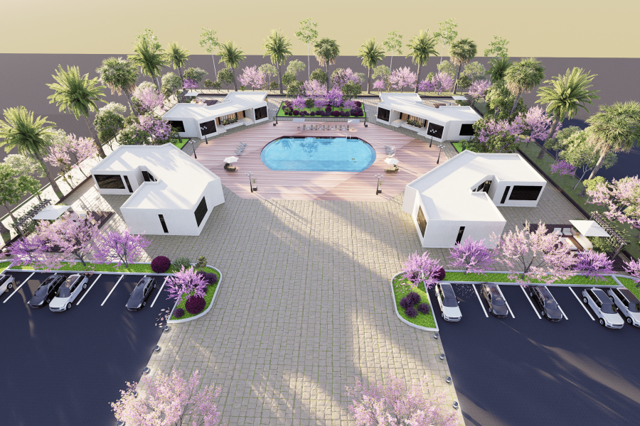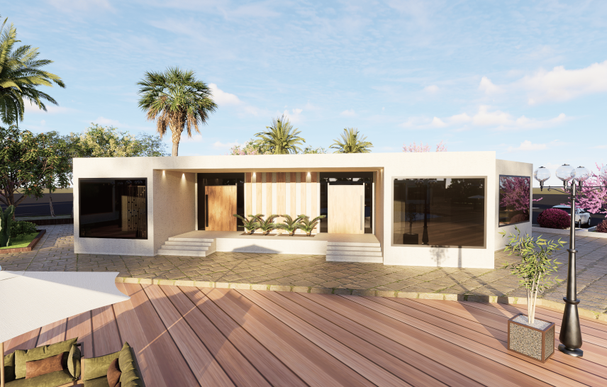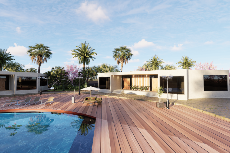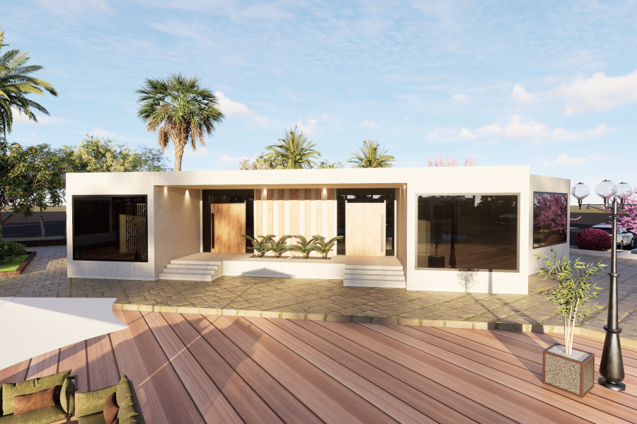 صُمِّمَ مشروع الكفرة الزراعي الضخم ليكون واحة عصرية تتكيف مع البيئة الصحراوية القاسية، حيث يمزج طرازه المعماري بين الفخامة والحلول المناخية الذكية. استُلهم المفهوم التصميمي من الواحات، حيث تشكل الكتل المستطيلة نظامًا واضحًا يتضمن أفنية داخلية مزروعة ومسطحات مائية لتلطيف الطقس وخلق بيئة مريحة. وللتكيف مع البيئة، يعتمد التصميم على نوافذ صغيرة محمية بكاسرات للشمس على الواجهات المعرضة لها. يجمع المشروع بين الصرامة التنظيمية والمرونة التصميمية، مع توفير مداخل منفصلة لكل مبنى لضمان الخصوصية. يتكون المشروع من مرافق متعددة، تشمل سكنًا للمهندسين والعمال، ومسجدًا، ومرافق ترفيهية، بالإضافة إلى وحدات فاخرة منفصلة لكبار الشخصيات، مما يجعله واحة عصرية متكاملة في قلب الصحراء.