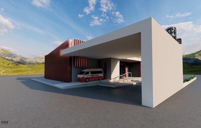 يمثل هذا المشروع وحدة إغاثة طبية مصممة كجزء من شبكة إنقاذ على طول الطرق السريعة، حيث تفصل مسافة ٥٠ كيلومترًا بين كل مركز وآخر لضمان الاستجابة السريعة. تقوم الفلسفة المعمارية على الكفاءة الهادئة والتعاطف الإنساني، وليس على الفخامة. يعتمد تصميمها على لغة معمارية معبرة، حيث تعكس الخرسانة المكشوفة الصدق، ويضيف الخشب الدفء الإنساني، ويعزز الزجاج الشفافية والثقة. صُممت المساحات الداخلية بتسلسل وظيفي صارم يوازن بين سلاسة الحركة، والتحكم الطبي، وخصوصية المريض، عبر ثلاث مناطق رئيسية هي: منطقة الاستقبال والفرز، والمنطقة الطبية النشطة، ومنطقة الخدمات المساندة. الهدف هو تقديم مبنى لا يكون مجرد منشأة طبية، بل نقطة استجابة إنسانية توزع الأمان على امتداد الطريق، لتعيد تعريف العمارة كأداة إنقاذ فعالة.